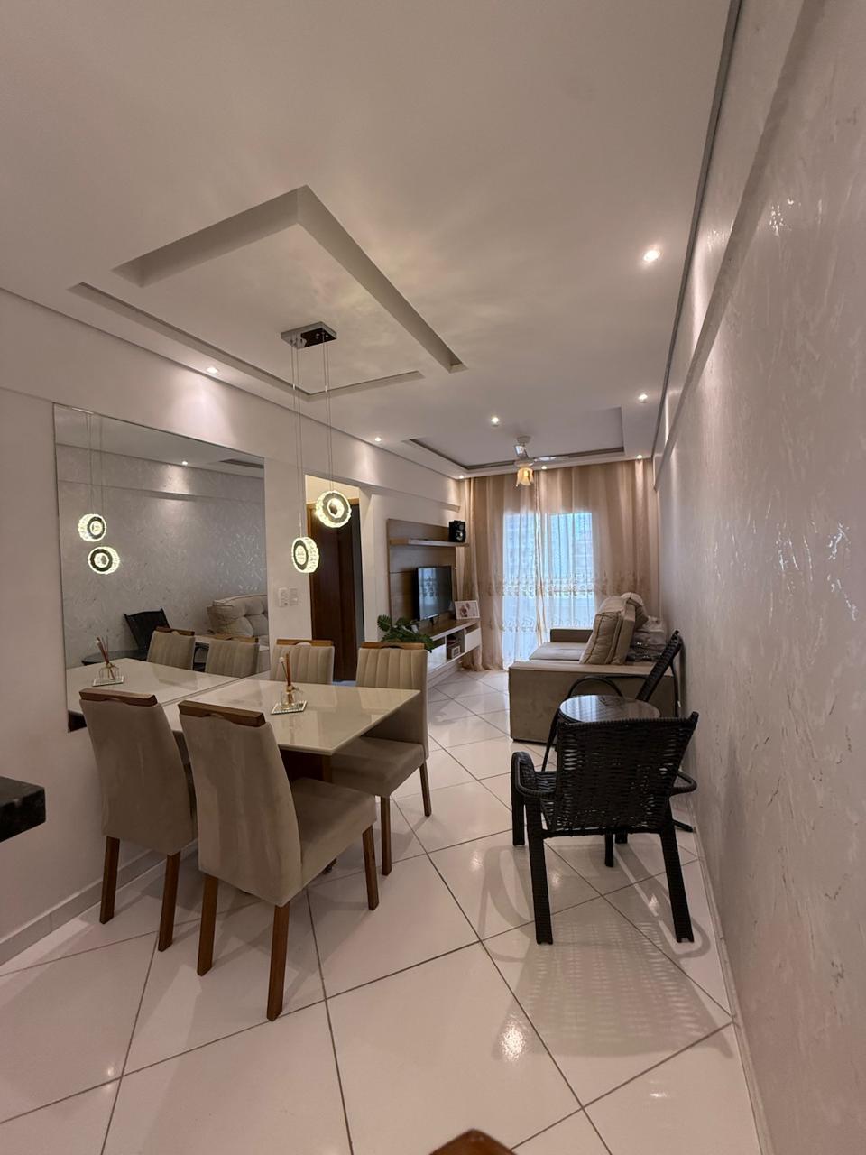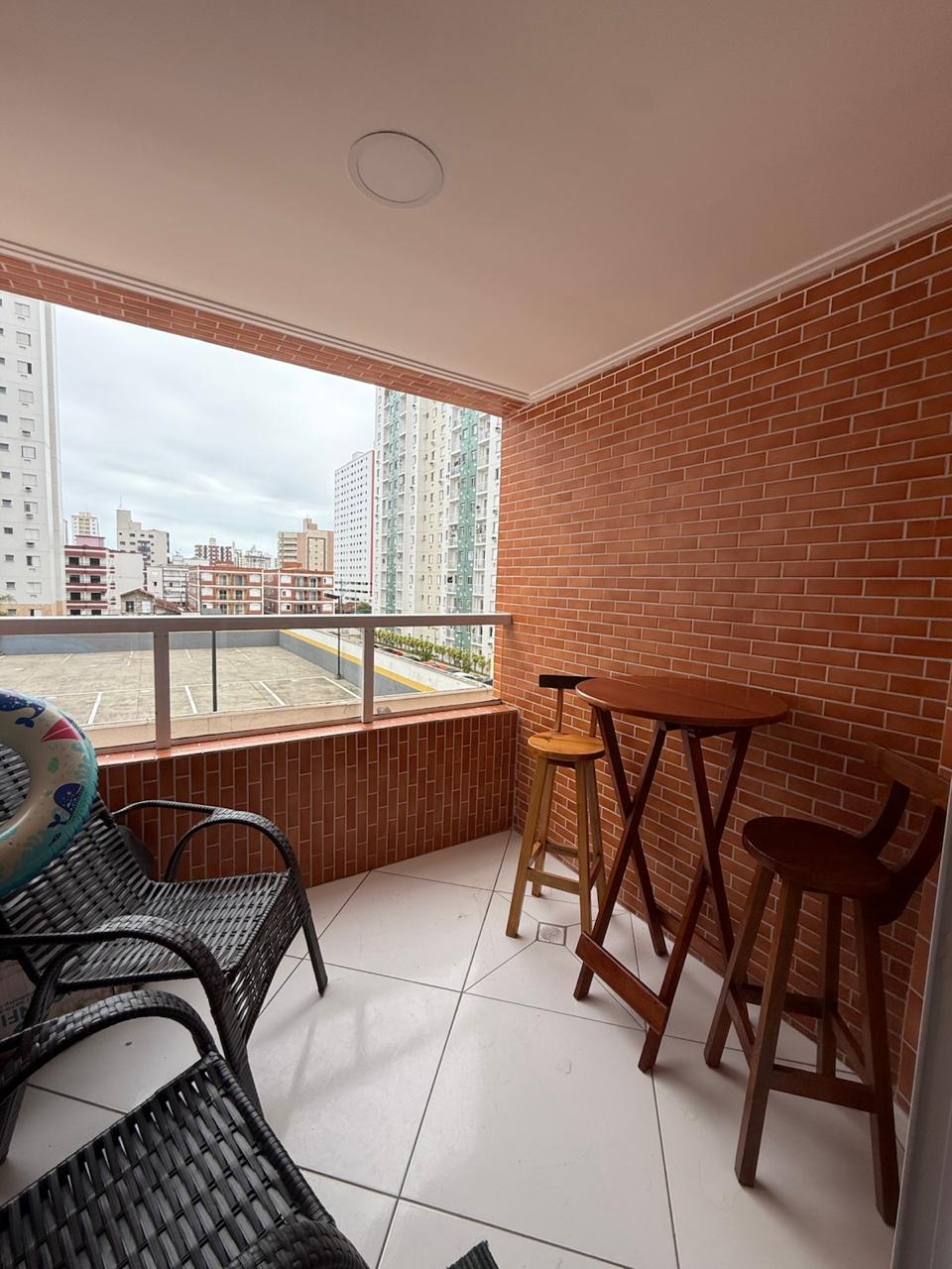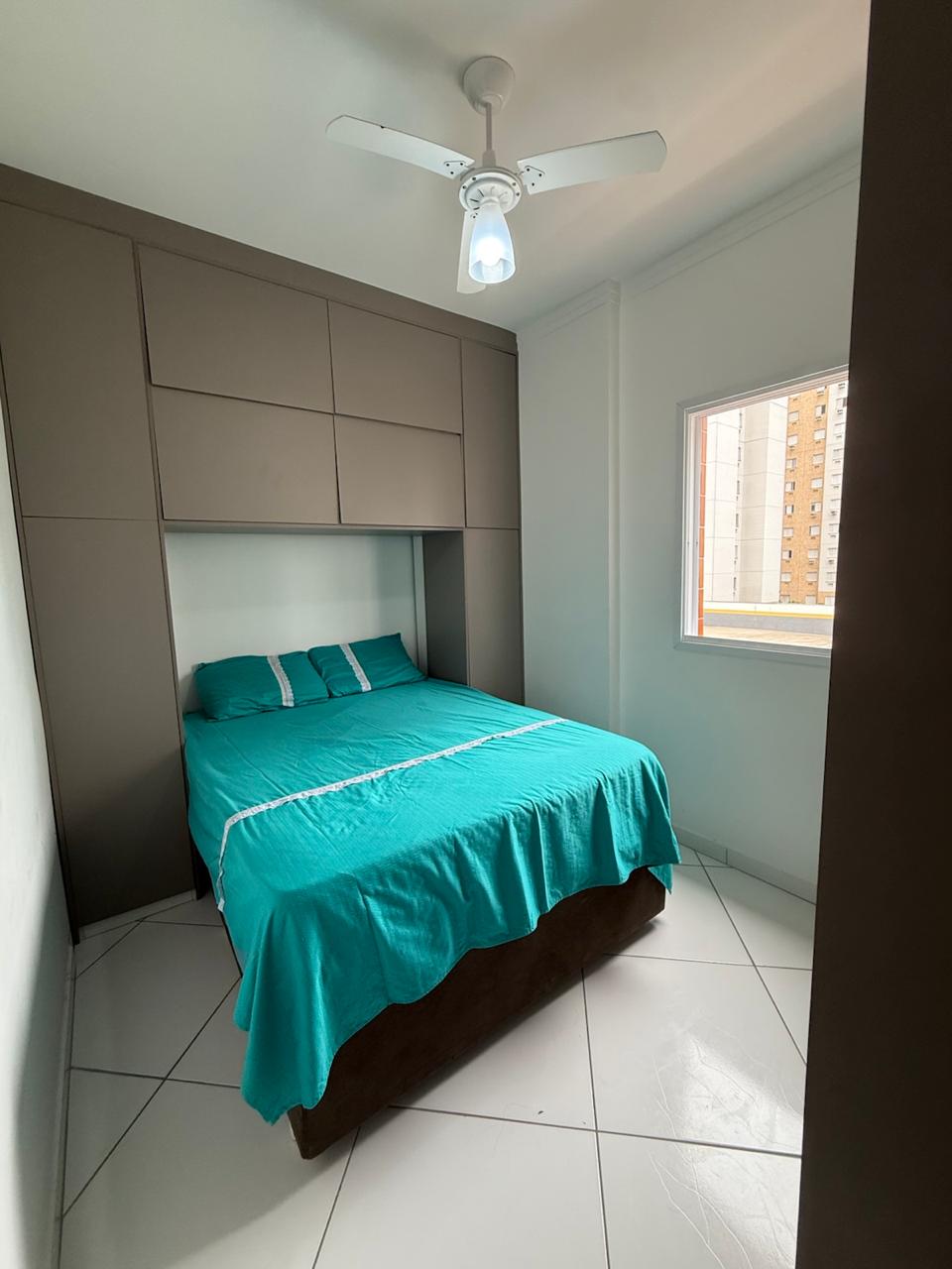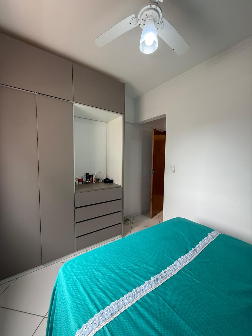 Apartamento completamente reformado a 180 metros da praia , com 02 Dormitórios, 02 banheiros, sala integrada com a cozinha, área de serviço, varanda, posicionado para os fundos, móveis planejados tanto na cozinha como nos quartos, piso no porcelanato, box de vidro.