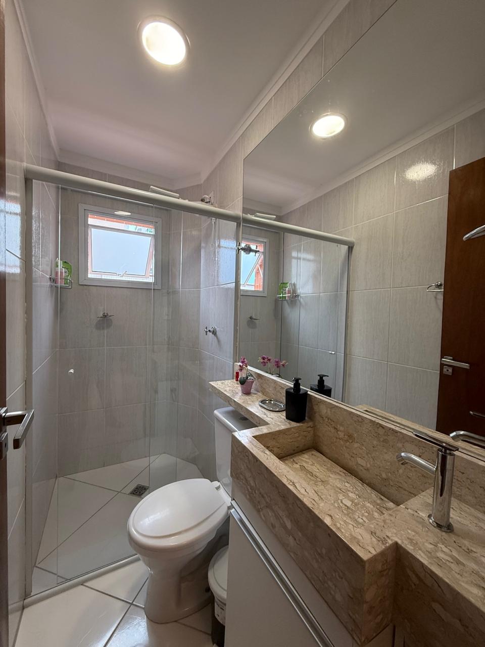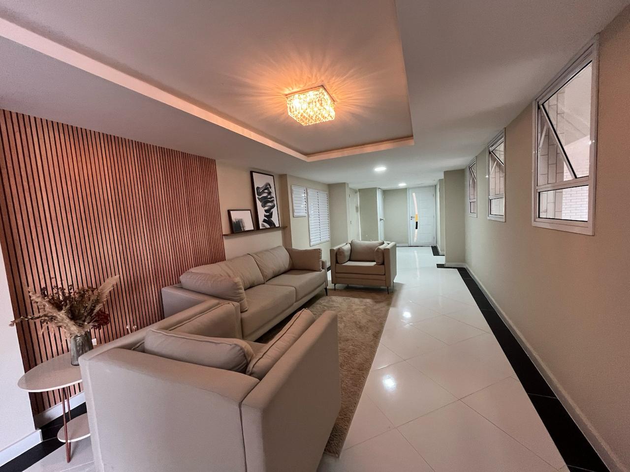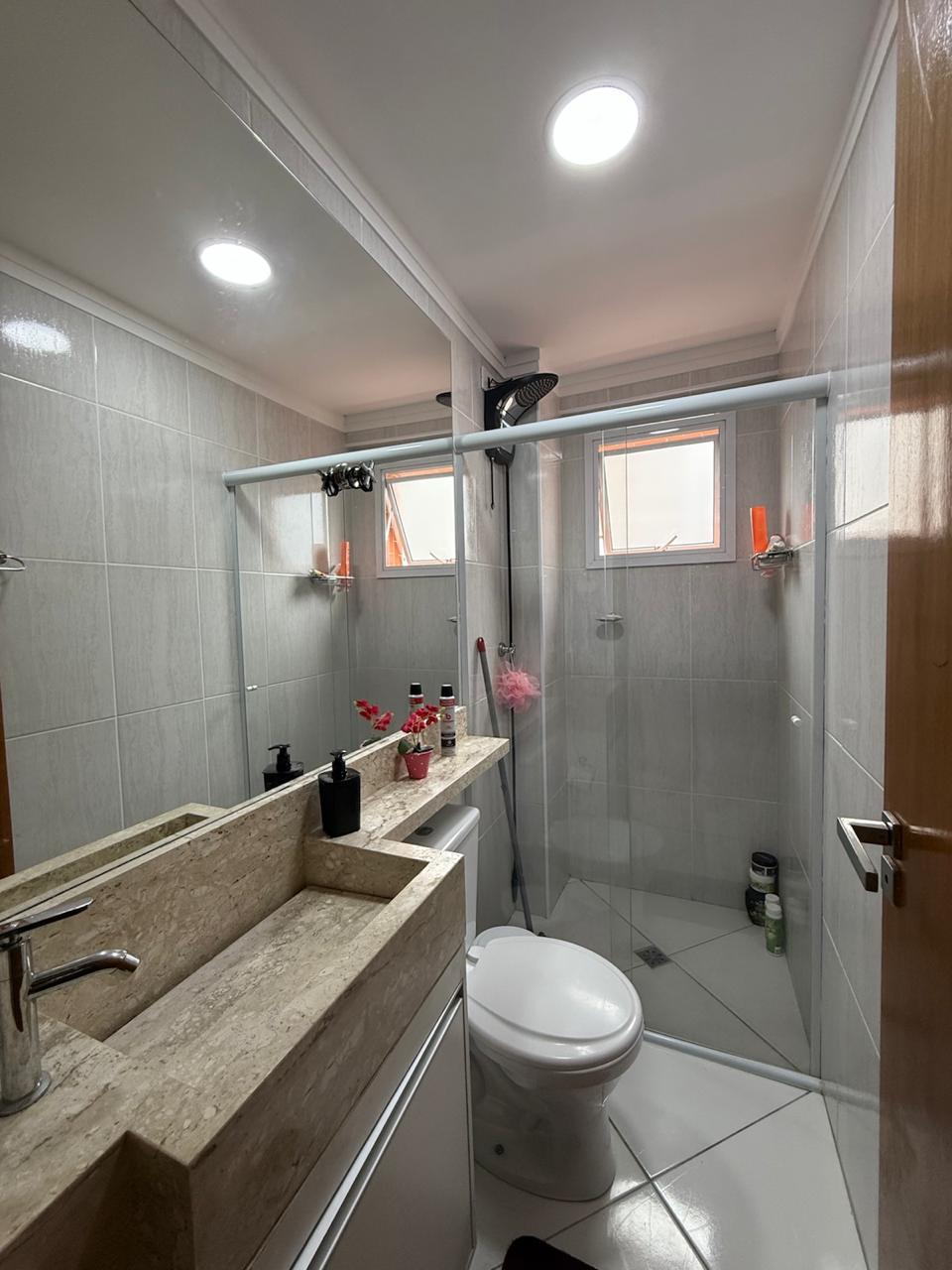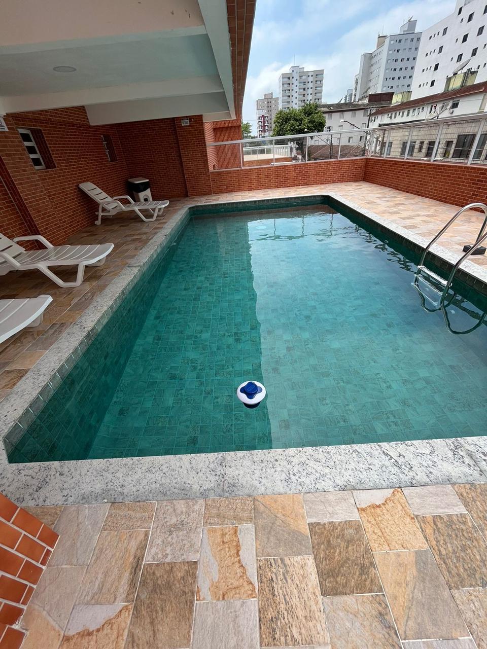 Apartamento completamente reformado a 180 metros da praia , com 02 Dormitórios, 02 banheiros, sala integrada com a cozinha, área de serviço, varanda, posicionado para os fundos, móveis planejados tanto na cozinha como nos quartos, piso no porcelanato, box de vidro.