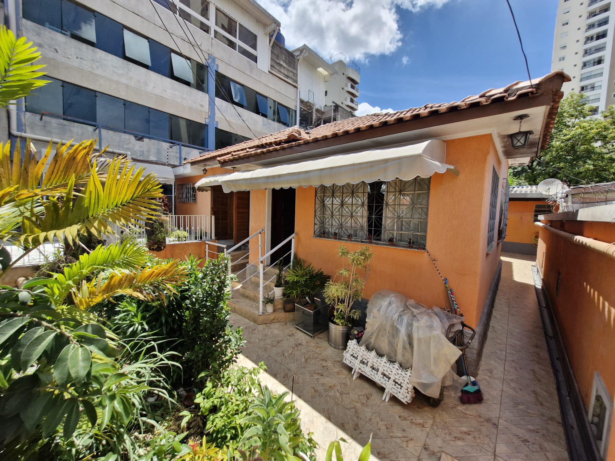 O Terreno possui 384 m² e 20 metros de frente e 3,5 metros acima do nível da rua, tornando a casa atraente para investimento (construtores) ou a sede de um negócio.